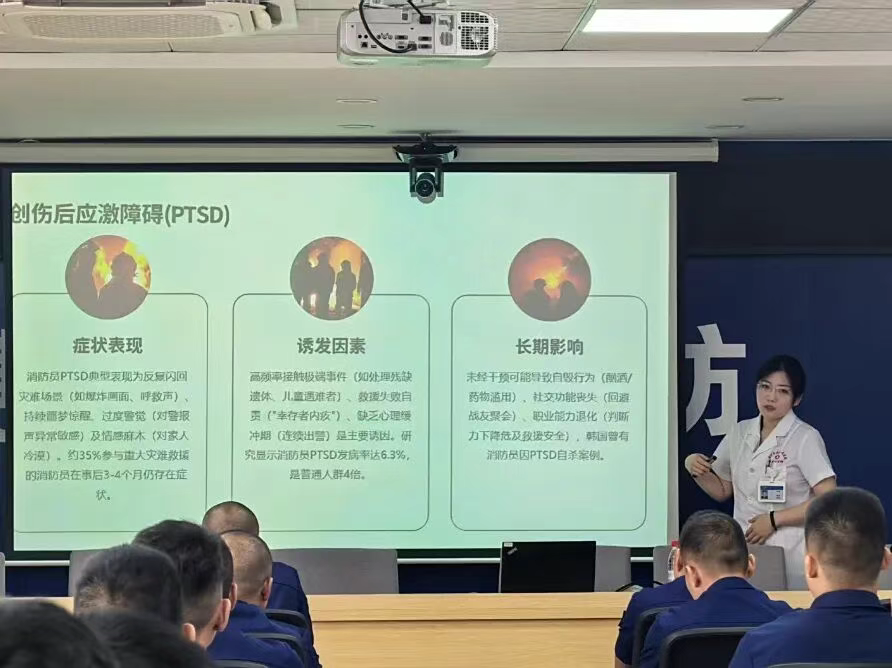 為致敬救火英雄、守護消防員心身健康,2025年8月29日,惠州市榮軍優撫醫院組織專業醫療團隊走進惠州市消防救援支隊下角消防救援站,開展了一場以“關愛火焰藍、健康心護航”為主題的健康服務活動。