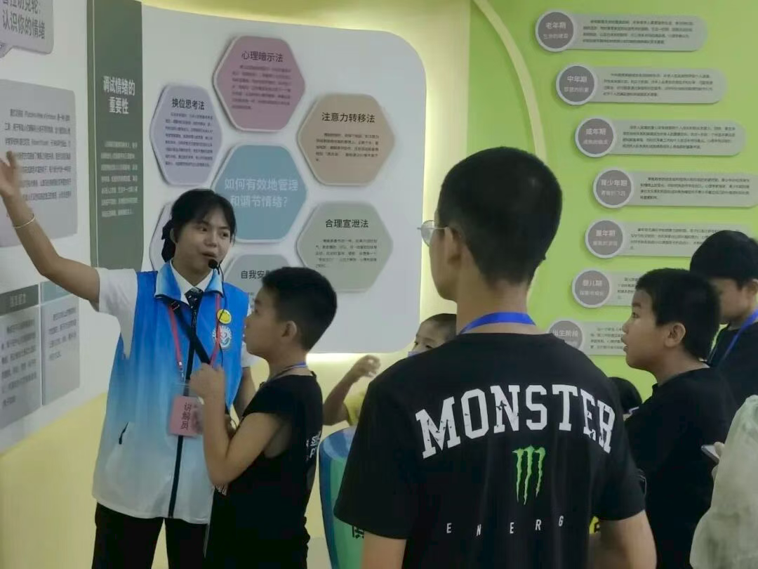 在心理健康科普體驗館內,講解員詳細介紹了14個展區的科普知識,引導參觀者進行專注力訓練、放松、測試等沉浸體驗,讓參觀者正確了解心理健康、了解自我,增強心理調適能力。